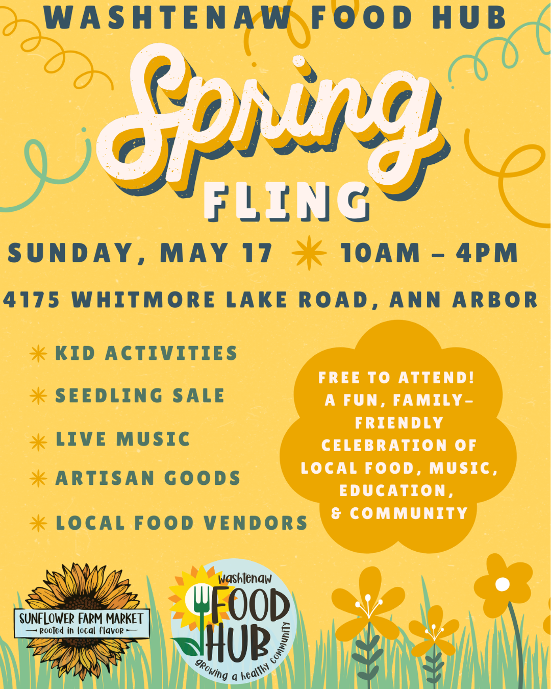 Join Washtenaw Food Hub’s Spring Fling on Sunday, May 17, from 10–4. Enjoy live music, local food, artisan goods, crafts, and hands-on activities celebrating community, agriculture, and sustainability for all ages.